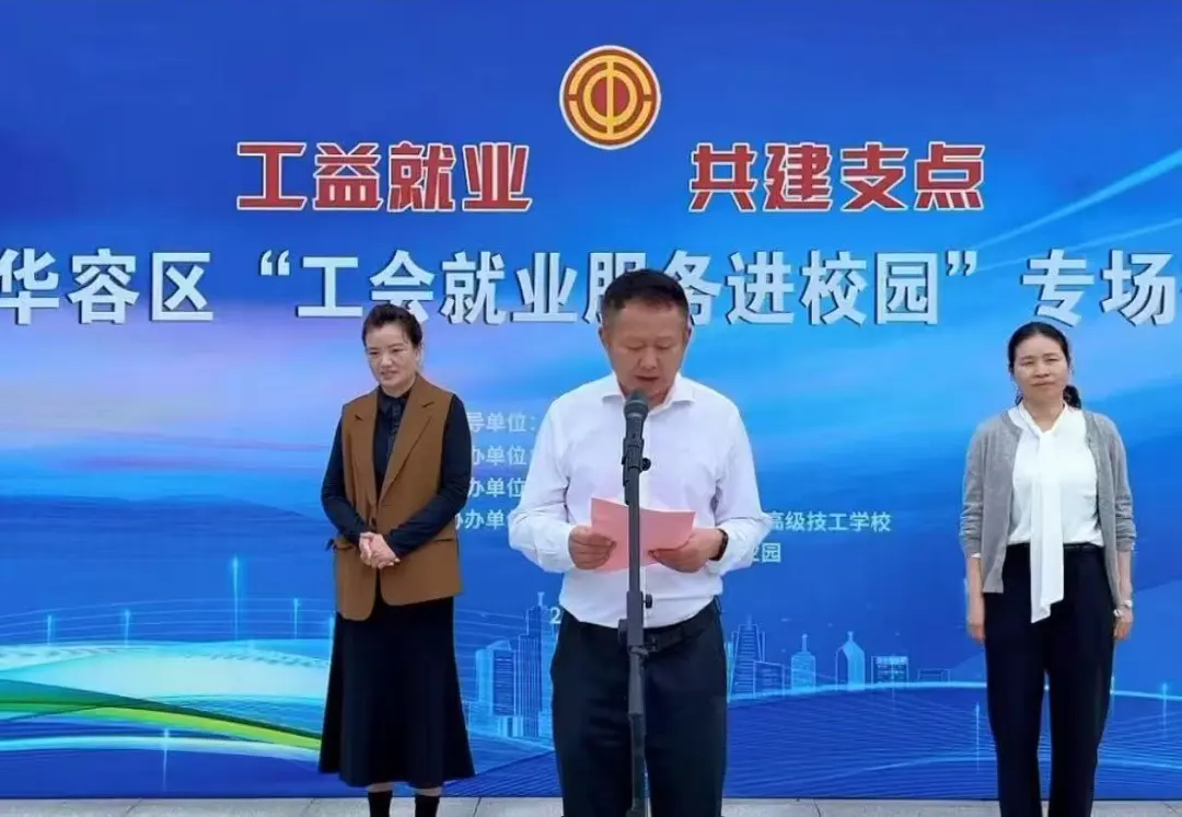 张勇同志在活动现场讲话中指出:举办这次活动的目的,是为了深入贯彻华容区委、区政府和上级总工会关于促进就业工作的部署要求,充分发挥工会在促进高质量就业中的积极作用,通过创新就业服务方式,为职业院校毕业生等青年群体转岗待岗、困难职工等重点就业群体提供精准就业帮扶。同时将这一活动打造成为职业院校学生感知职业世界、涵养职业精神、提升综合素养的生动实践课堂。举办本次活动将搭建工会与职业院校合作桥梁,采取“线下展位+线上平台”双重渠道,探索校企+工会就业服务模式;通过线上开展直播带岗,线下同步开展现场招聘和特色交流与育人环节,为求职者获取岗位信息精准对接适配就业机会,享受工会普惠性+精准性就业服务。